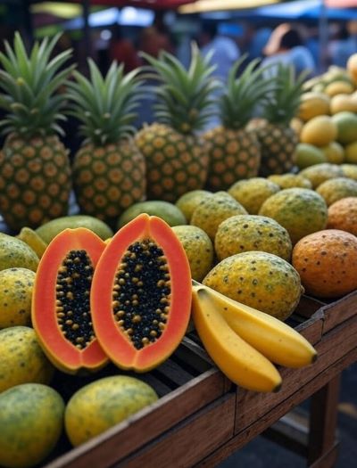 Wrinkly purple or yellow passion fruits signal perfect ripeness—inside lies an explosion of aromatic, tangy-sweet seeds. Bursting with vitamin C, fiber, and antioxidants, they’re tiny powerhouses of tropical flavor.